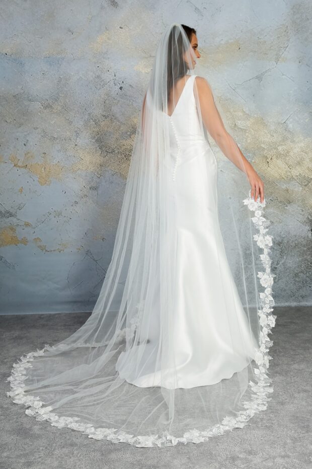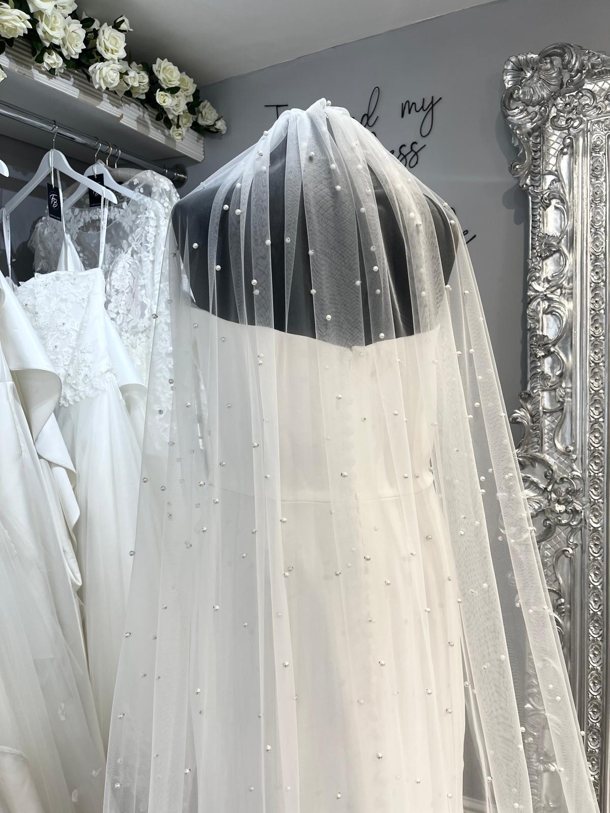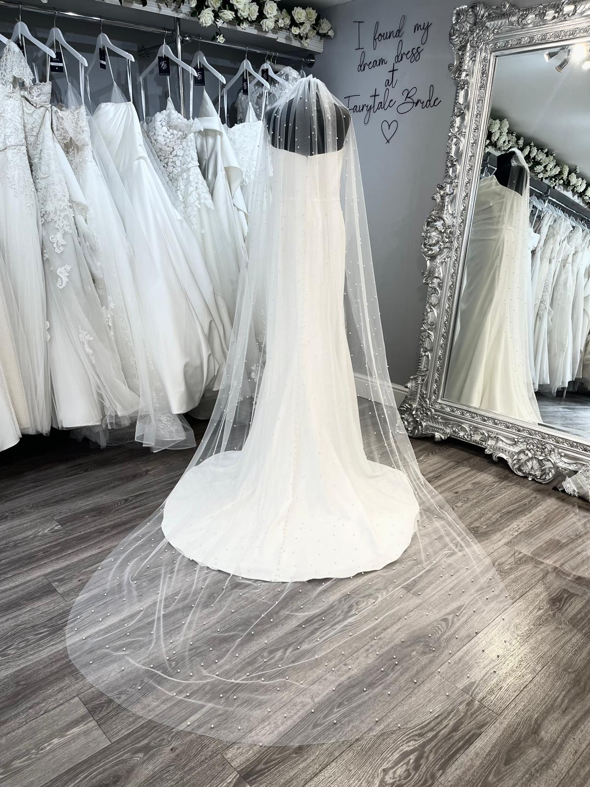 Currently available in the boutique in single tier Cathedral length.