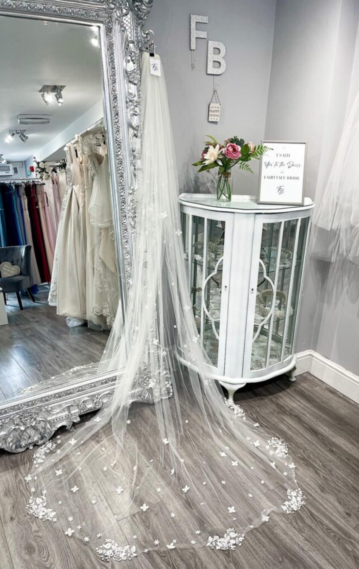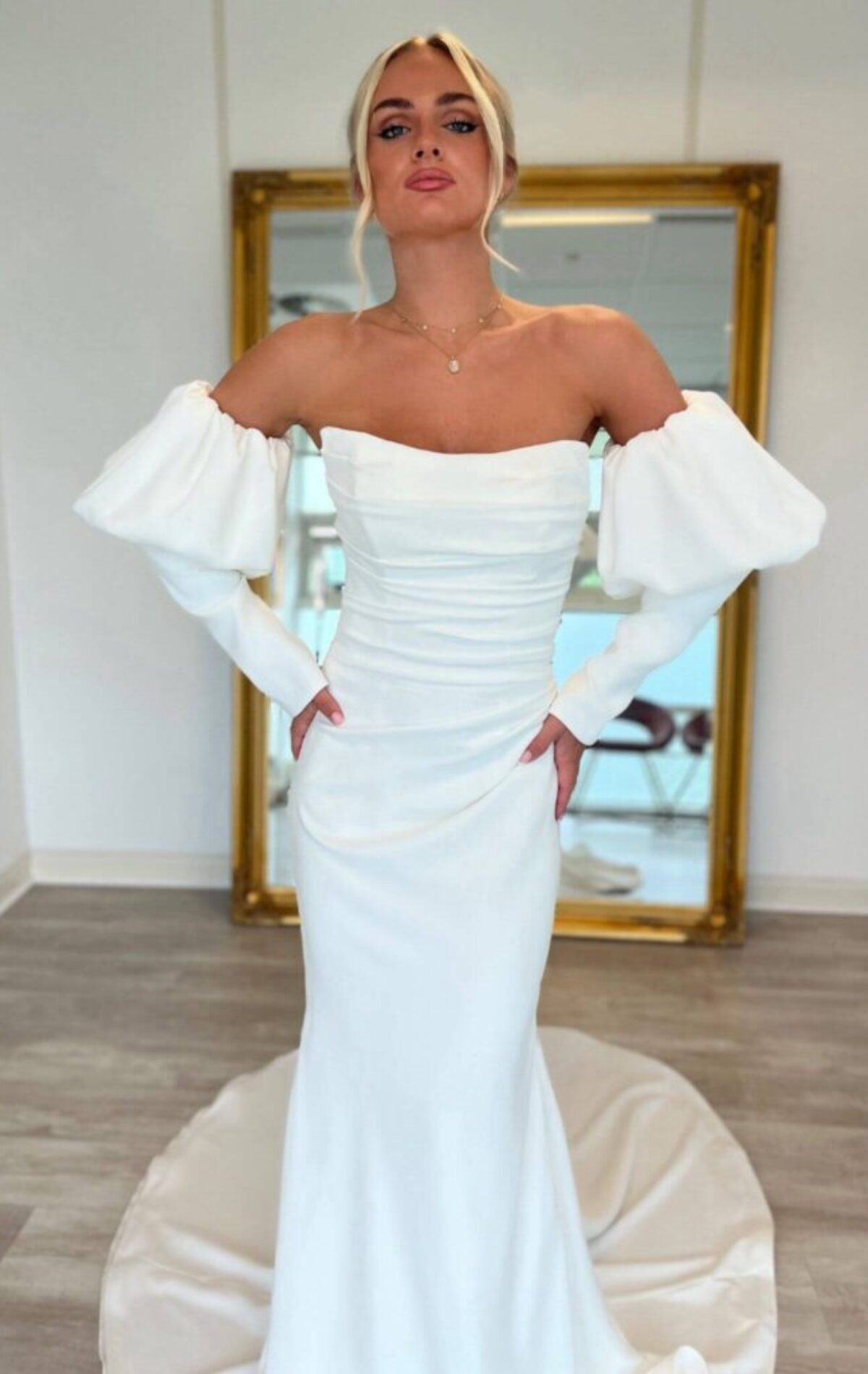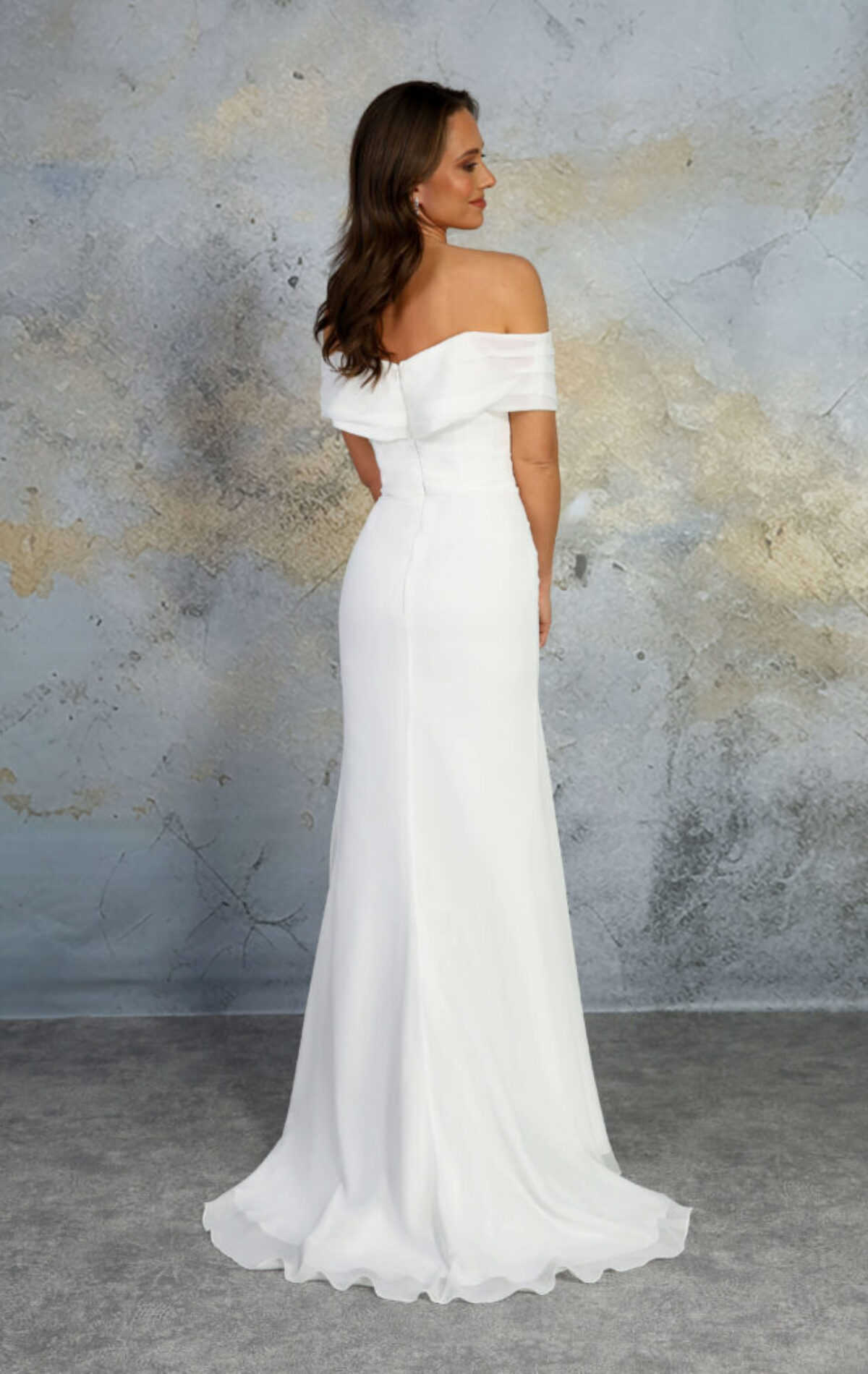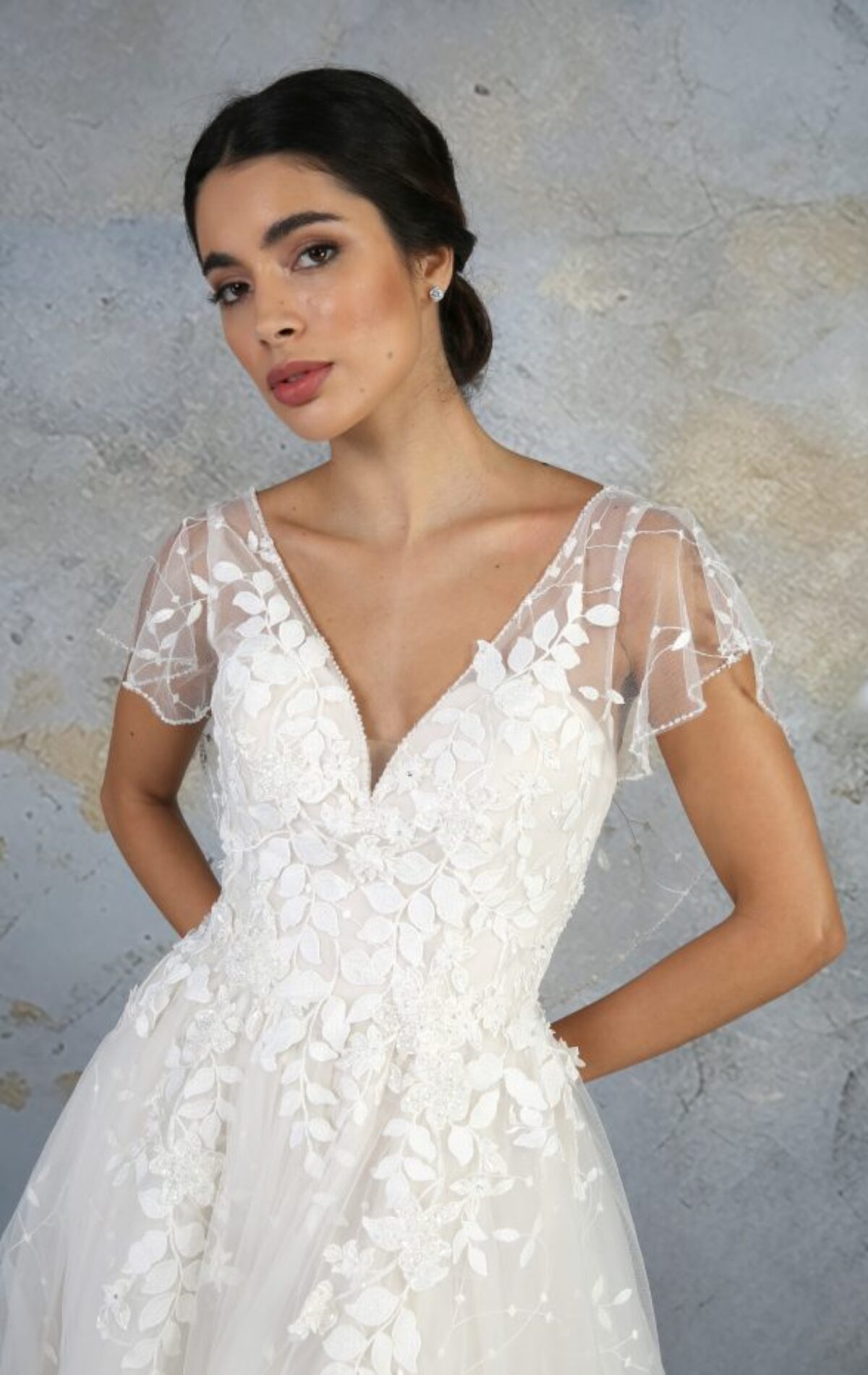 Customisation Options: Change sleeves to lace, change length of train (shorter or longer) (additional charges will apply).